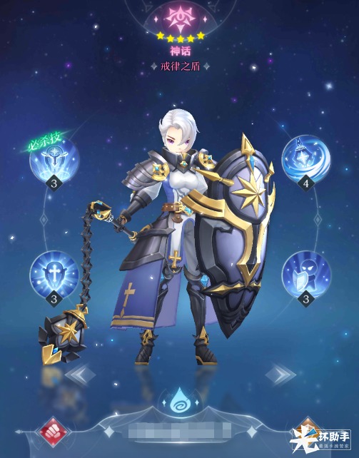 接下来介绍另一个前排,戒律之盾安娜洁,是不是从名字就能看出来,安娜洁是个实实在在硬邦邦的肉盾。大招真言圣盾,全体张开护盾,该技能升级之后还有回血跟加攻击的效果,这哪是肉盾,这是队里的妈妈!技能秩序之源·铁壁能给安娜洁自身提高生存和回能速度,为全队得到续航能力的速度得到了进一步提升。能全体开盾跟单奶的安娜洁,简直就是万金油本油,而且还是个帅气的骑士,这谁不爱呢?