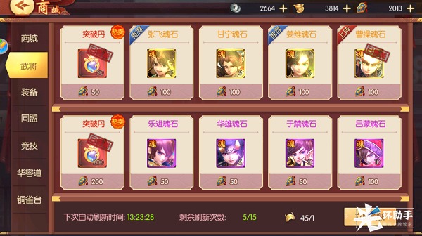 武将商城可以用英雄勋章来兑换想要的武将魂石和突破丹,魂石是召唤武将、武将升星的必要材料。玩家可以通过每日试炼关卡、武将分解获得将魂令,新手玩家前期武将培养需要进行升星,需要用到大量突破丹,建议可以用将魂令兑换突破丹,每刷新一次都有随机武将魂石,可以兑换一些控制、加怒加血的武将,少走弯路,比如刷到小乔、刘备、太史慈、曹操、吕布等等,可以兑换。