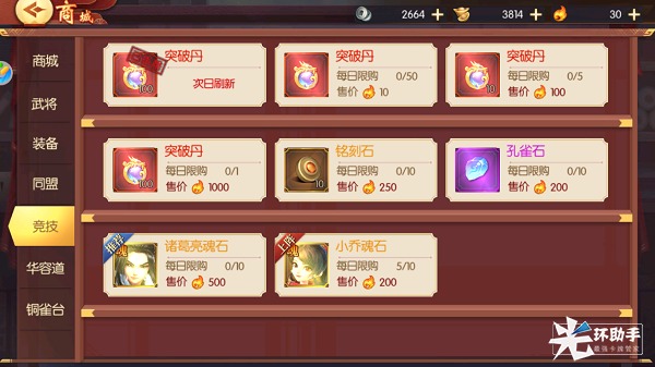 竞技商城目前资源是固定的,前期主要兑换诸葛亮和小乔魂石,这两个武将基本人手必备,而且升星需要的魂石数量也很大,每日限购10个,建议每日都兑换,贡献币够用可以兑换铭刻石。