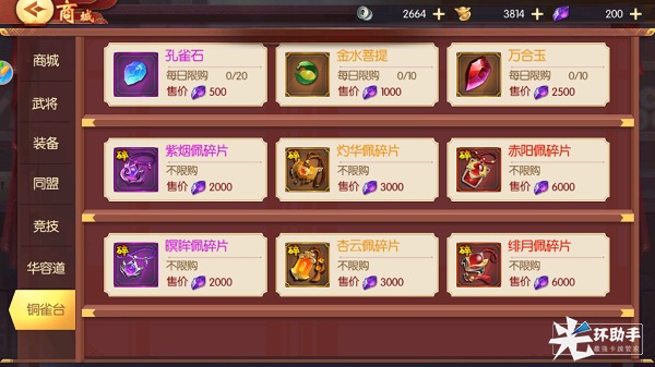 玩家在铜雀台副本通关后,可以获得铜雀之忆,使用铜雀之忆可以在铜雀商城兑换配饰碎片、配饰突破材料等,这里建议兑换红色配饰碎片,红色配饰属性最厉害,前期可以兑换紫色过渡一下。