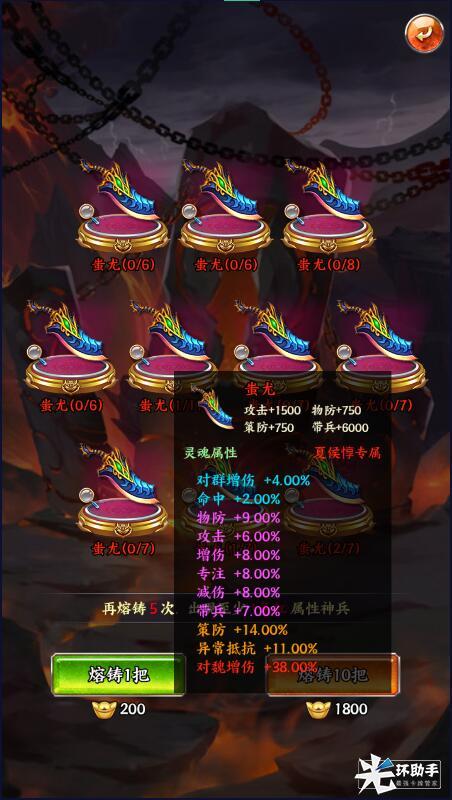 当然,也不是每一次都要靠批量熔铸来碰运气。玩家也可以使用神兵定制,消耗神兵之灵直接为钟爱的武将,打造拥有多条目加成的高品质神兵。并且通过添加辅助材料,玩家还可以人为增加属性条目的保底。高付出自然也有高回报,当神兵铸成之时就是主公碾压四方英豪之日咯。
