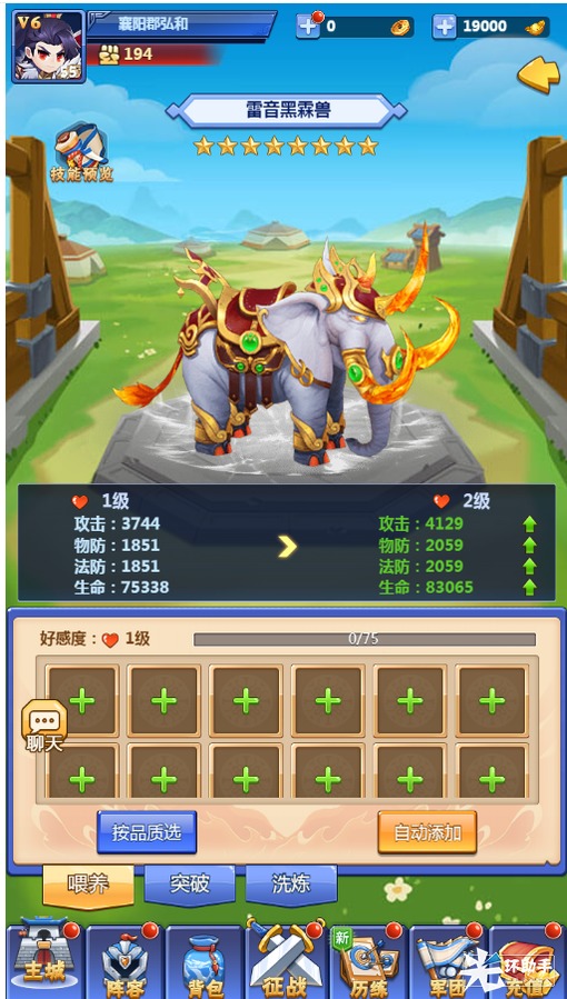 2、坐骑喂养能提升给武将的攻防血加成,不同的武将有推荐不同的坐骑穿戴。