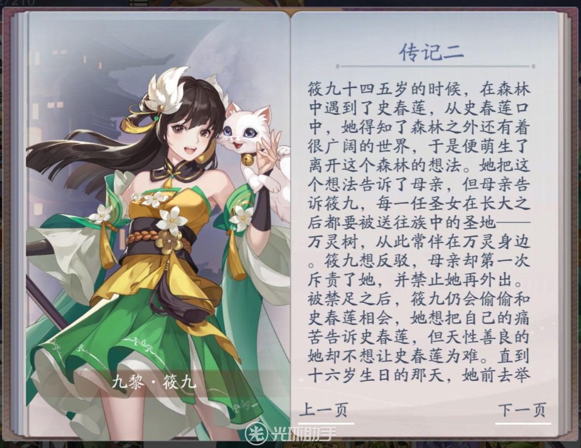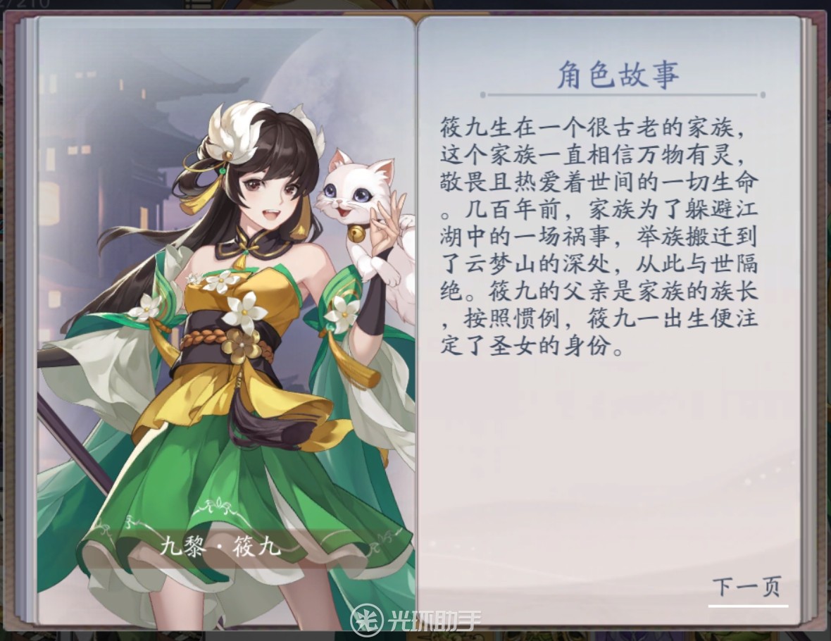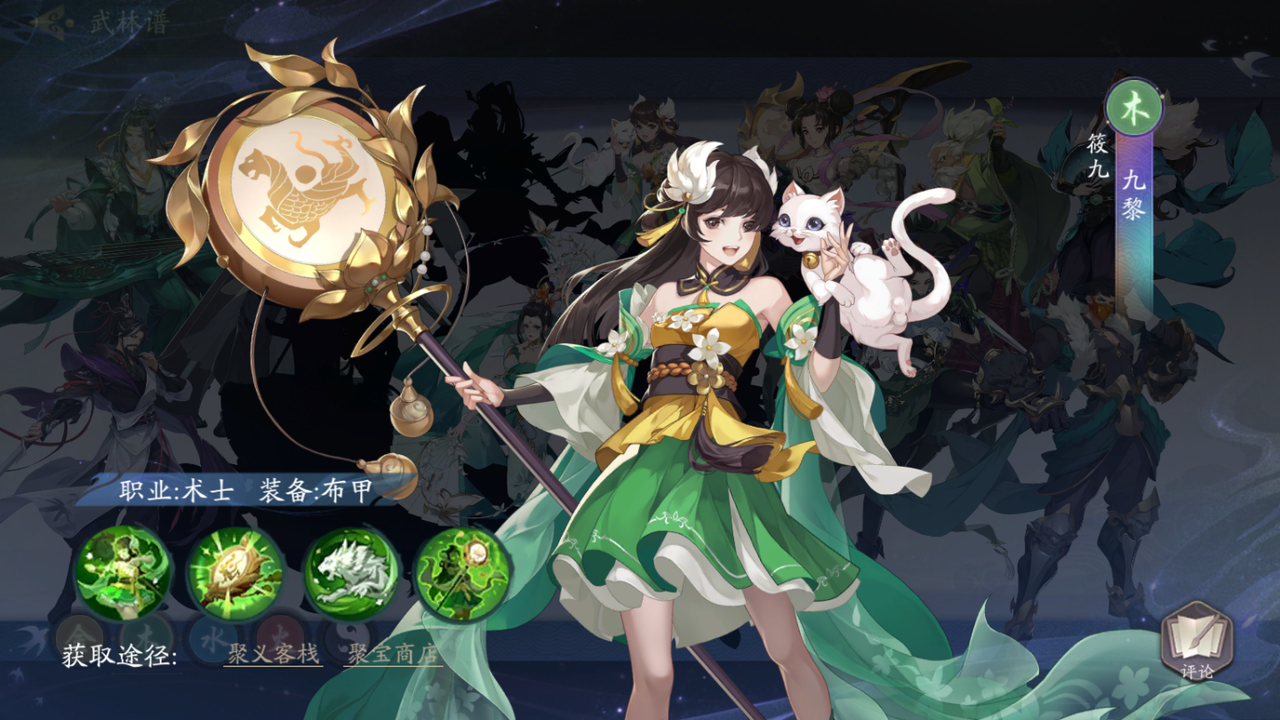 《武林闲侠》木系-九黎-大侠技能图鉴!!光环攻略组发布于 2021-11-19本文包含九黎的技能,大侠图鉴,传奇传记等信息。 大家觉得该大侠适用性如何,欢迎在评论区留言噢~ 大侠图鉴 大侠技能 传奇传记 补:直到十六岁生日的那天,她前去举行圣女的传承仪式,在获取了圣女代代传承的力量之后,她就要前往神树,从此常伴万灵。绝望之际,史春莲突然出现了,大闹了传承仪式,不由分说就拉着她逃离了族中。自此,筱九终于可以看看外面的世界了。