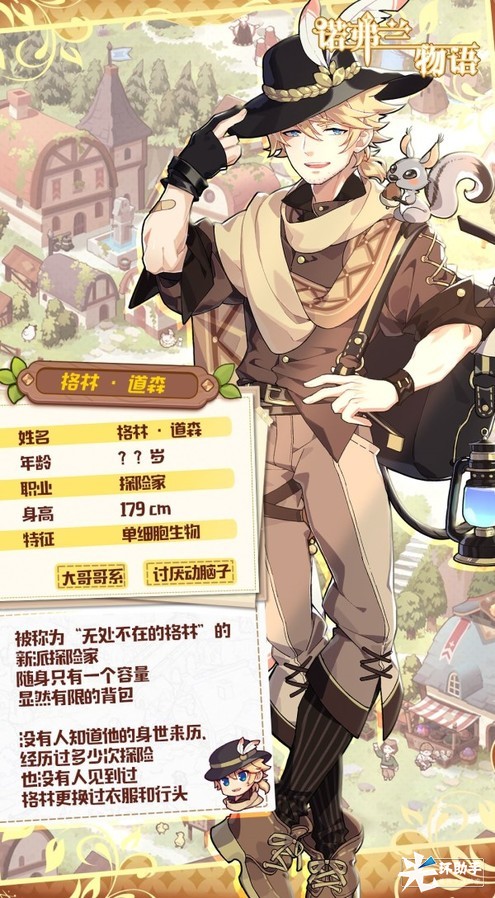 《诺弗兰物语》来自琉璃岛的居民们 格林伊辛贝露发布于 2021-12-15来自琉璃岛的居民们 格林探险家·格林大哥哥 | 单细胞 | 小松鼠被称为“无处不在的格林”的新派探险家没有人知道他的身世来历没有人知道他经历过多少次探险也没有人见到过格林更换过衣服和行头