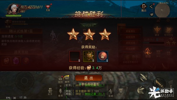副本奖励:有3.4万经验,培养卡以及初级随从升阶能量球。副本奖励随着,副本层数以及通关时间增加。