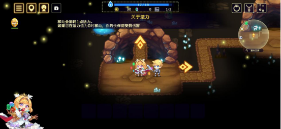 游戏在剧情流程上的完备也使得整体有很不错的体验,在基于迷宫般的地图和限定移动步数的游戏机制设定下,在一定程度上会引起玩家的探索欲,在探索地图的过程中,会有一些小怪物隐藏,也会有一些其他的资源装备,而在与怪物战斗系统上,设计的还是有些过于简单,没有体验到可操作性,但在整体的关卡发展上,可以说还是有一个由浅入深的过程,而这个过程也是玩家在探索下的的结果。