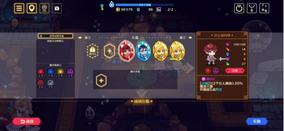 而在玩法操作上,就很是简单明了,基于游戏是以肉鸽玩法为主要内容,自走棋为玩法操作形式,迷宫般地图的特定场景,在制作设计中,就直接用箭头方向替代了移动键盘,简洁明了的操作方式确实将玩家的上手难度降低了,但同时也在降低了玩家的可操作性。