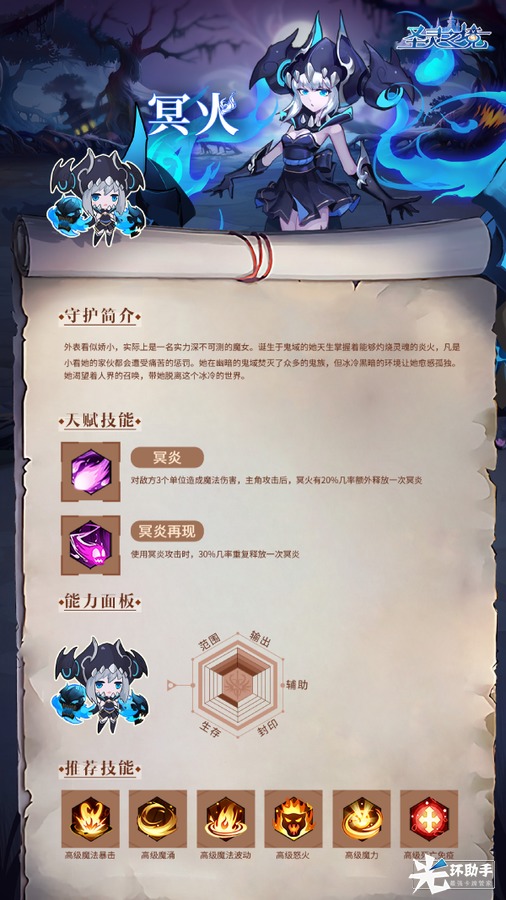 加点方面:常规法系角色加点选择4魔1耐,保证足够输出能力的情况下适当增加物理防御防止被物理单体角色针对,由于冥火天赋技能大幅提升了输出能力,在加点上也可以选择5魔进行极限输出。
