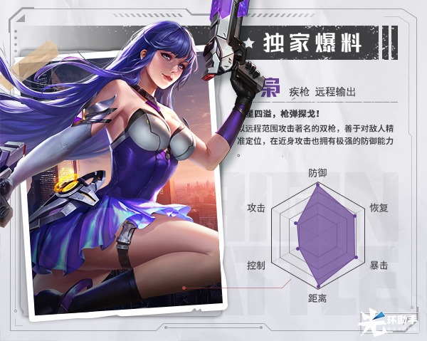 角色特色:以远程范围攻击著名的双枪,善于对敌人精准定位,在近身攻击中也拥有极强的防御能力!