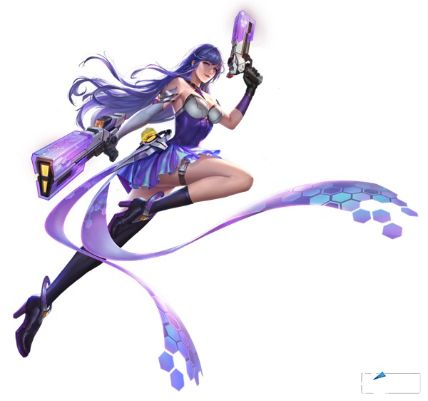 跟男枪暗鸦相似的是,女枪也装饰有飘带,六边形粒子扩散样式也迎合了赛博时空的主题。
