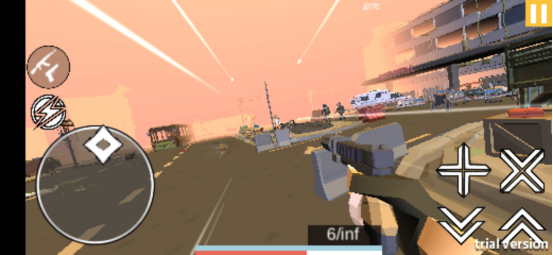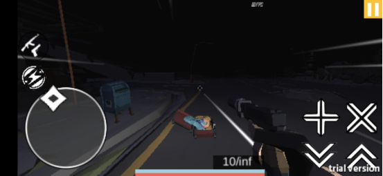 游戏开局直接进入场景,没有剧情故事线铺垫、没有引导教程带领玩家熟悉,一切的一切都是很陌生的样子,不过直接上手操作一下还是挺有操作手感的,就是前期搞不懂是要干什么,游戏想要表达什么。游戏以丧尸题材背景进行创作,既有丧尸也有流浪者的存在,不过好像都对我不大友好,都想打我,所以,前期就一直用无限金币的手枪射击,而在游戏中,玩家将以第一人称的视角出现,较为荒芜的城市,很有代入感,而在其中,我也是感受到了角色在跑起来的时候还是很有速度的,后来才知道这是一款融入了跑酷元素的射击手游,怪不得有些另类呢。