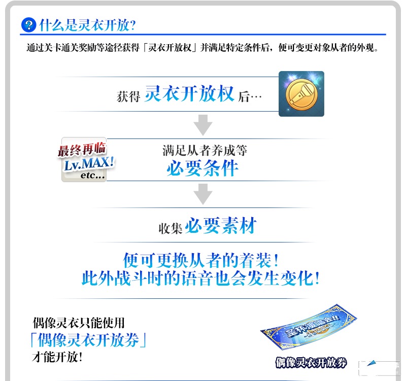 ※「灵衣开放」仅会改变从者的外观,对职阶或数值等无影响。