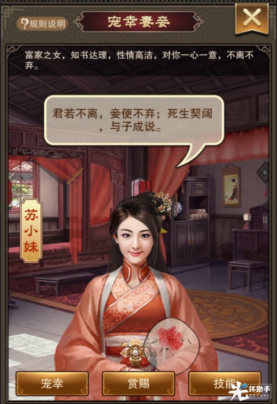 玩家跟着主线任务走,要不了多久就能解锁“红颜”这一功能。这里我要提醒一点,解锁红颜技能看的的确是亲密,但是解锁后的技能是需要红颜的魅力经验才能升级的。同时,有一个观点——红颜亲密要平均,我表示不太同意,当然,如果你的心心特别多可以这么做。
