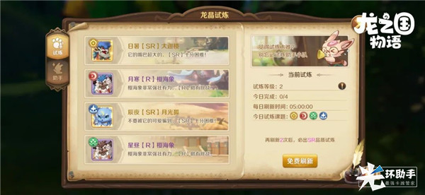 当然,如果你觉得自己的实力和技巧足以挑战SR难度的龙晶试炼,也可以刷新当前龙晶试炼——刷新一定次数,必出SR难度试炼!