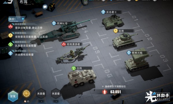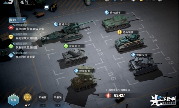 作为部队核心的死神Ⅳ号有对敌方后排造成AOE和减能伤害,而希神火炮则能造成群体AOE伤害。再配上骑兵坦克、帝国II号、动物杀手的控能和减伤作用,整套控制配队构建完成,不仅输出客观还能让敌方难以蓄足能量释放技能。最后再由帝国Ⅳ号补足后排伤害和技能【穿刺炮弹】的穿甲破防,敌方后排将毫无生存空间。