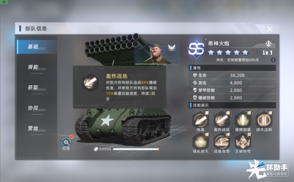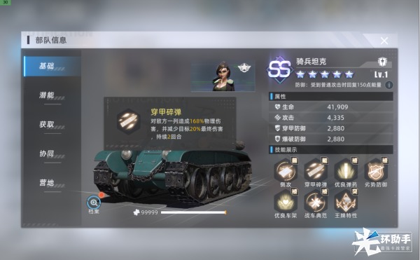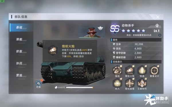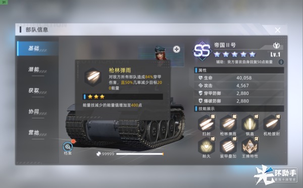 骑兵坦克的【穿甲碎弹】不仅能打出AOE伤害更能减少敌方输出;而帝国II号的技能【枪林弹雨】也能进行全体打击和减能;动物杀手的【猎坦火炮】不用多说,是前期比较好用的单体点杀技能。