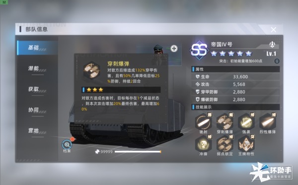 帝国Ⅳ号是前期较为好用易培养的后排打击部队,技能【穿刺爆弹】带有穿甲和破防效果。而且这支部队的适用性很高,能够搭配的阵容很多,随时换队也完全可行。