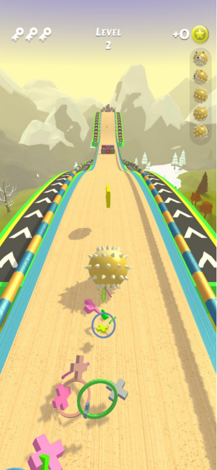 游戏虽然是英文版语言,但却丝毫不影响玩家在游戏中的体验,毕竟没有任何剧情及背景的插入铺垫,开局直接进入闯关模式,而游戏也是基于mod版本,可以使用无限金币,所以这个可以直接解锁不同动作球的颜色,种类等等,而在不同动作球的设计上还是蛮有特色的,有的是圆形西瓜,会是波比形状,还有满身带刺的圆球,可谓是较为新奇,游戏也是设计了不同的地图场景,有城市背景及森林公园等等,毕竟给玩家造成视觉上的疲惫感嘛,而在游戏过程中,玩家需要通过虚拟摇杆控制动作球的方向速度,如果你一不小心动作球就会反转方向,尤其是在上坡的时候,很容易操作使速度不够,值得动作球向下掉,而这些更多的是因为其操作方式的不同,如果能在优化一下操作方式的选取,相信还是能将体验感提上一个层次的。