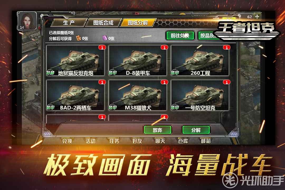 《王者坦克》1月11日开启不删档测试白纸扇发布于 2023-01-103D坦克对战卡牌手游《王者坦克》删档测试1月11日开启! 《王者坦克》是一款3D坦克对战卡牌手游,游戏中高度还原了现代陆战之王在战场中纵横驰骋披靡一切的战争场面。 玩家们可以在手机上体验到丰富的坦克种类,并可收集阵容,发动大规模的团体战斗。超过百款的坦克以及装甲作战车可供玩家选择,玩家可个性化升级强化自己阵容中的坦克战车,使其发挥出超越现实的作战能力。 游戏中还有丰富的战场地图,沙漠、雪地、高原、雨林等,让玩家能够身临其境的体验到钢铁洪流的宏大魅力。