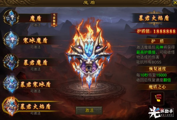 元神魔盾拥有非常高的盾值,受到怪物伤害时先扣盾值。提升元神境界可以解锁更高级魔盾,赞助4可以快速解锁所有魔盾,直接挑战终极首领,越级打宝,先人一步!