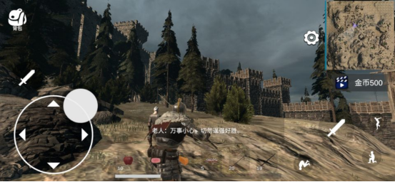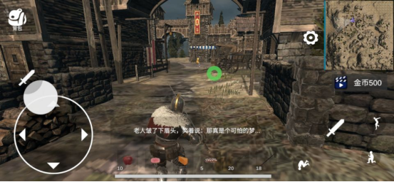 游戏中,玩家所要操作的是一位来自中世纪的武士,在画面的设计上也满满的都是中世纪般的画风色彩,无论是在荒漠之中还是在村落之里都有着欧洲气息存在,但在游戏的探索过程中,给到玩家的探索性还是比较自由的,可能游戏在其自身定位时以开放世界的吧,在自由探索的过程中,玩家需要操作左区的虚拟移动键,右区的攻击和其他动作移动键,很简答的操作设定,打小怪也是较为简单,至于在后期打BOSS难度的话,还是需要玩家去自行探索吧,但是整体就打击感来说,给到玩家的代入沉浸感并不是特别的强。