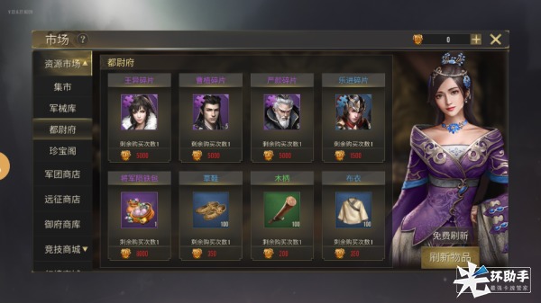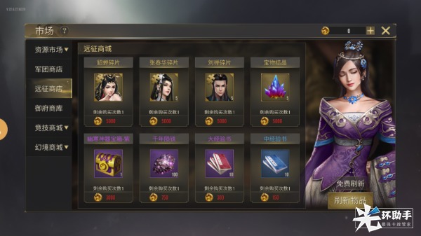37级开放远征商城,远征商城中会出售武将碎片及宝物碎片,消耗布币可进行购买。点击商城中的刷新按钮,可刷新当前商品。系统每日将赠送3次免费刷新的次数,免费次数耗尽后再次进行刷新需消耗铜钱。