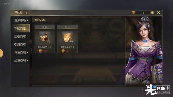 15级开放军团商城,军团商城中会粮草和金钱,消耗个人功勋可无限购买