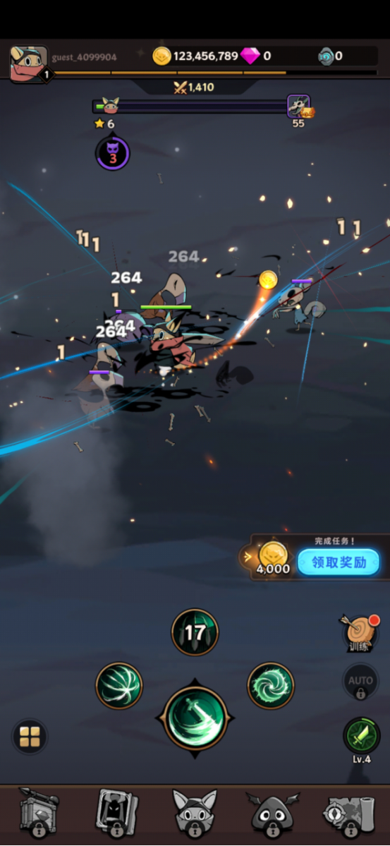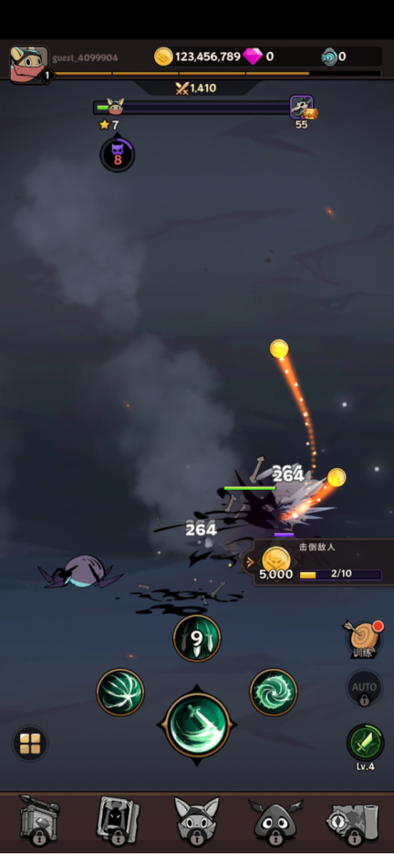 游戏的开局cg很有趣,为我们讲述了一个有趣的故事线,也为我们铺垫了背景设定,而我们择是需要做的就是去操作角色对抗恶魔,很经典的剧情背景模式同时也是较为有动画气息般的角色设计,整体的画面渲染上既有趣有耐看,还是比较喜欢的这个画风的哈,不过有些不同的是,本作以竖屏为主,将不同的技能设计其中,玩家需要做的不仅要操作角色对抗恶魔,还要帮助角色提升能力升级装备,解锁不同场景下的不同技能,而且解锁的过程较为漫长,需要不断的去打怪升级获得金币,这也就导致了本作中产生了一些重复性操作,所以游戏也是有设计放置式操作,可以在很大程度上避免去肝下去。