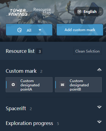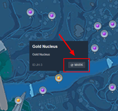 3. You can mark resources or other points you have found. Just click on the desired point and mark it. The marked dot will be dimmed, indicating that you have found this resource or have already been to this place.