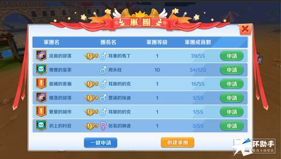 玩家可以选择自己创建军团或者加入其它人的军团。