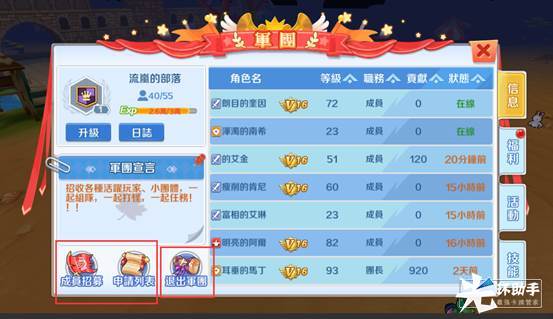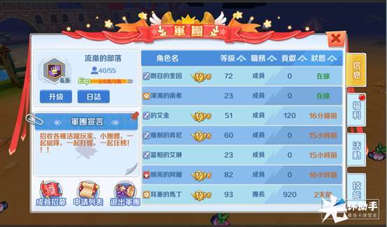 点击申请加入他人军团可能需要稍作等待,等待团长的审核。成功加入后就是军团的一员了!你可以在这里看见其他团员,赶快加个好友增进一下感情吧!和好友或军团成员一起组队打怪,任务效率会大大增加。