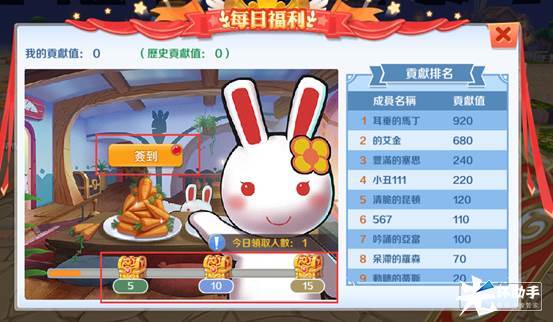 在每日福利中军团成员在这里可以进行签到,当签到达到一定人数后可以领取礼包