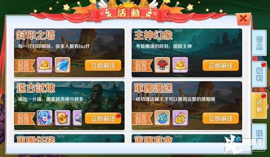 在军团活动中,有反应之塔,主神幻象,远古试炼,军团护送,军团任务,军团宴会,守护女神等超多军团玩法