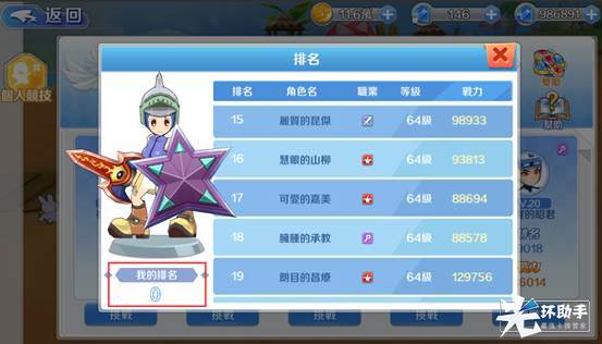在“排名”中可以看见玩家自己的排名和其他玩家的排名战力等信息。