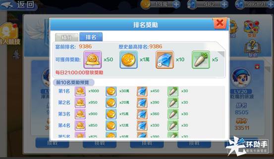 竞技系统还给玩家准备了丰富的排名奖励,根据排名在每日的21:00:00结算发放奖励,排名越靠前奖励越好哦!玩家突破自己的历史最高排名,将获得额外奖励!