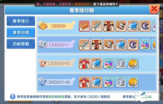 活动开启时间为:周一、三、五21:00--21:30. 在赛季里玩家与玩家相互竞技不断提升自己的段位
