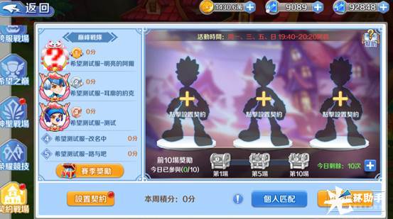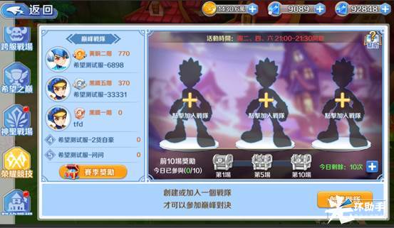 契约战场玩法需要匹配6个人进行战斗,每个玩家每天可以参赛10次,次数不足时可花费绑钻购买。