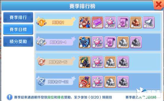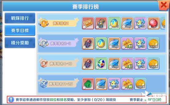 每一场挑战都可以获得积分、经验和道具。此玩法需要有战队的玩家才可以报名,可以组队或单人报名,战队的积分是队员积分之和。赛季里打满20场,赛季结束时可以获得目标奖励。新赛季开始,所有玩家都重置为黑铁一阶,和0积分。