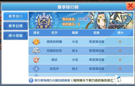 每一场挑战都可以获得积分、经验和道具。此玩法需要设置契约的玩家才可以报名,游戏是只能使用契约进行战斗,当所有的契约生命值为0时,角色判断为死亡状态。赛季里打满20场,赛季结束时可以获得目标奖励。新赛季开始,所有玩家都重置为青铜一阶,和0积分。