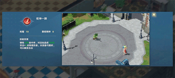 乾坤一掷:牺牲命中率对单个敌人造成物理伤害的技能,切记一定要在命中率高或者是敌方处于昏睡状态时使用,否则攻击时很容易被目标闪避。