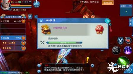 每日12:00、21:00世界boss刷新后,需要全服玩家合力在30分钟内将其击杀,否则世界boss便会逃离现场。Boss初始等级为20级,随着被击杀次数的增加,boss等级提升,同时也会变得更加强大,携带的宝物也变得更加丰厚 。