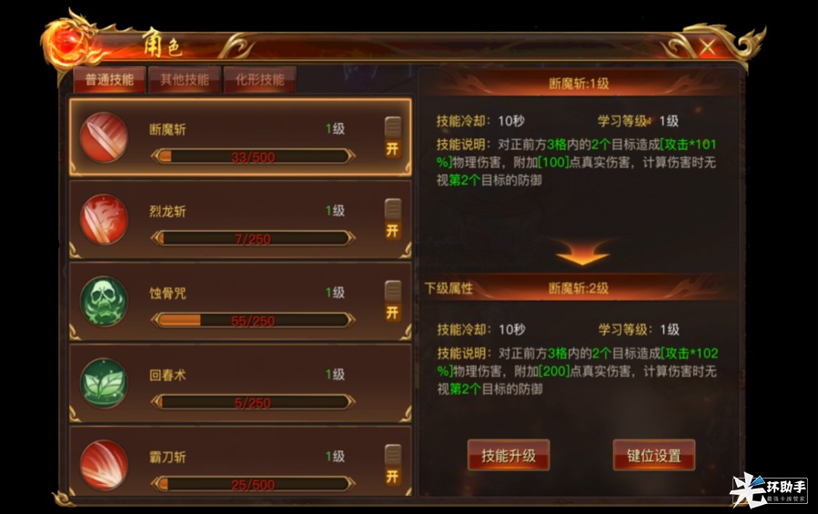 技能点评:高爆发的单体攻击技能,后期配合英雄与合击技能释放,够让对方喝一壶了。