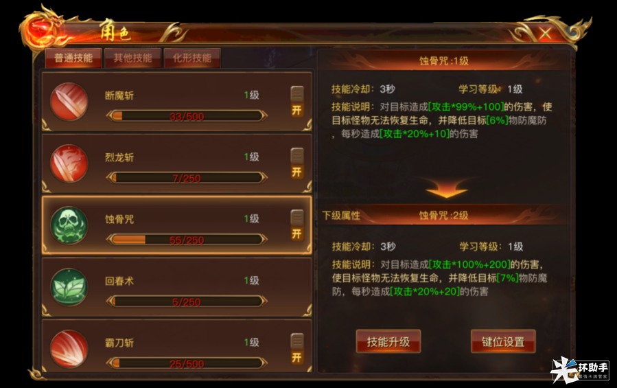 技能介绍:对目标造成【攻击*百分比+固定数值】的伤害,使目标怪物无法恢复生命,并降低目标一定百分比的物防、魔防,且每秒造成一定数值伤害;3秒冷却