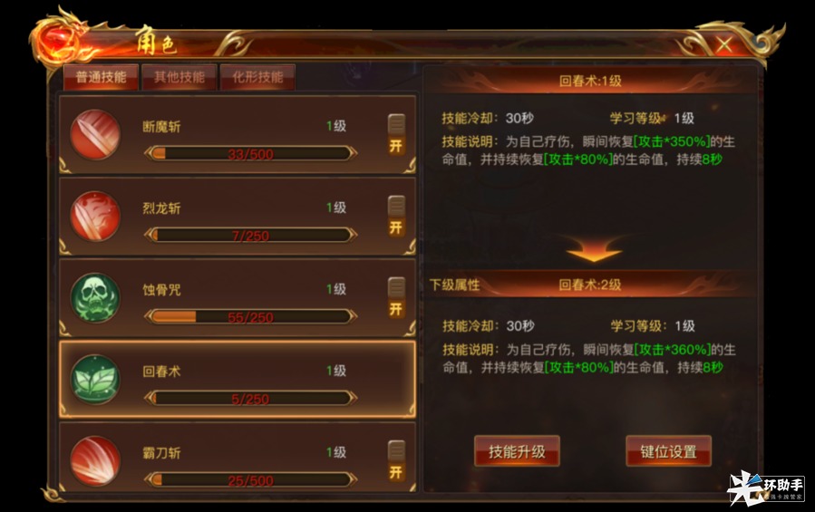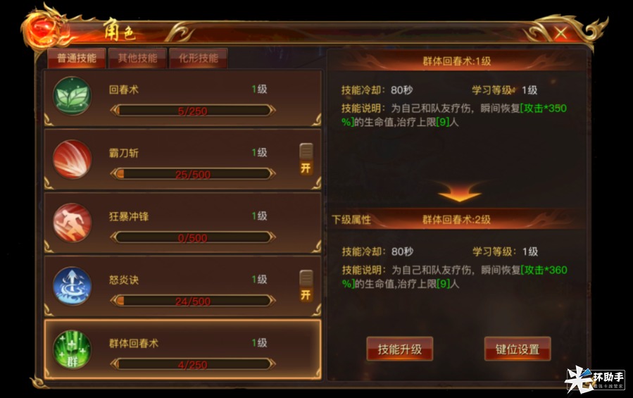 技能点评:总有打不过的boss,但是回春术能让你更持久,提升击杀几率。