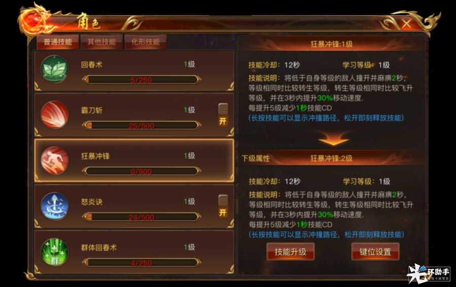 技能介绍:将低于自己等级的敌人撞开,并麻痹2秒,等级相同时比较转生等级,转生等级也相同比较飞升等级,并在3秒内提升30%移动速度;12秒冷却