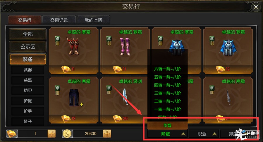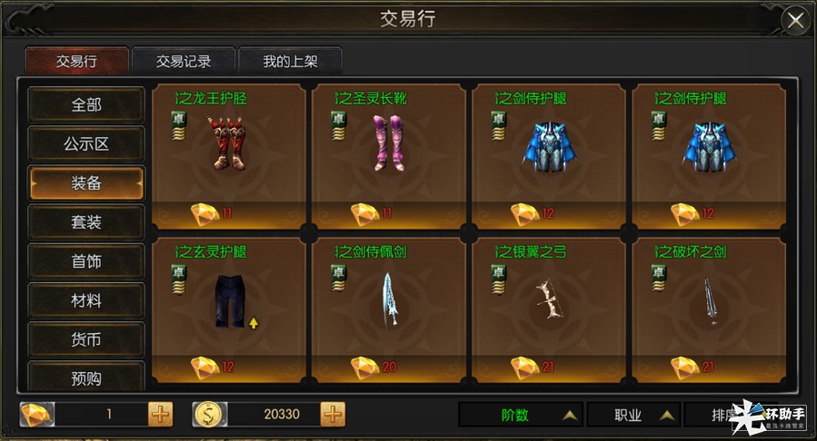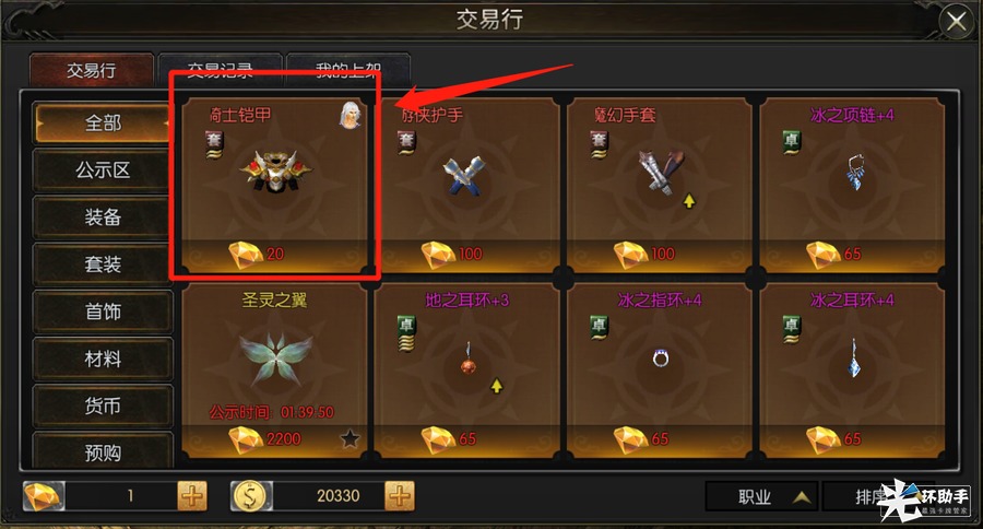 您可以根据这些交易分类,迅速地找到您想要购买的道具装备。