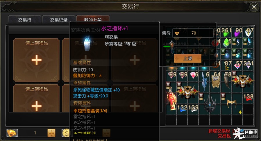 玩家交易存在交易税,本服交易交易成功会扣除卖方15%的交易税,买方不需承担,而跨服交易的交易税为30%。玩家在上架装备材料后,交易区会在该装备右上角显示一个头像,带有改头像的装备即为玩家自己的上架装备,非常方便查看。