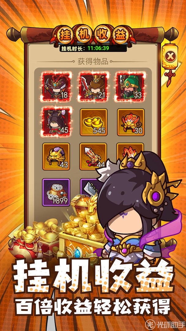 ●挂机升级:休闲刺激两全,随时嗨玩,奖励不会错过。