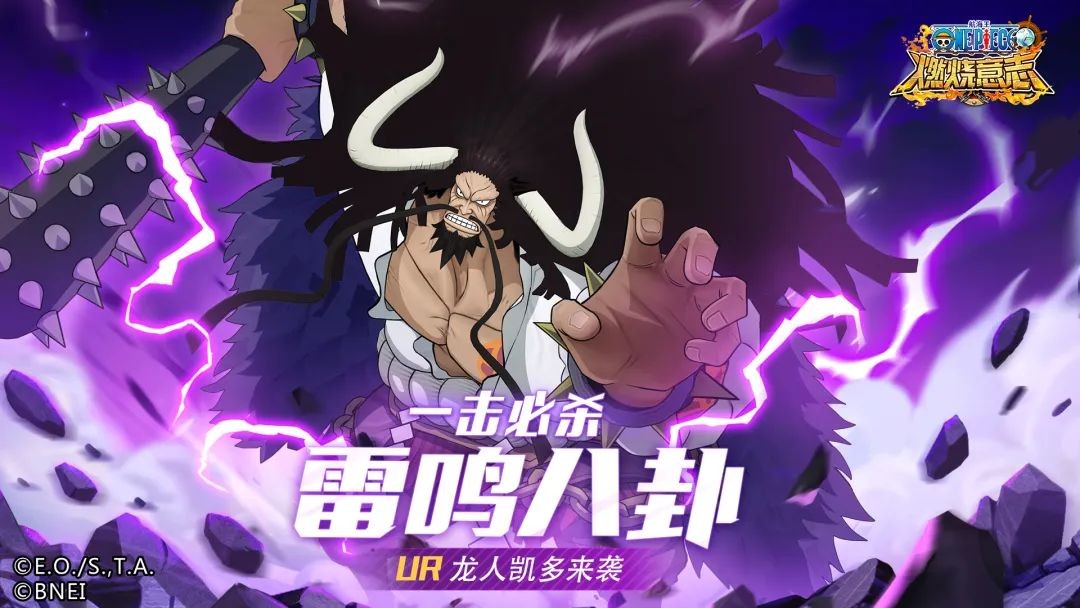 【佐乌&空岛】巨龙降世——UR龙人凯多首曝游戏官方发布于 2022-09-20 《航海王:燃烧意志》就要过四岁生日啦! 这次四周年庆典,船长们不仅可以体验丰富活动,还将迎来百兽海盗团总督,也是海陆空所有活物中人称“最强生物”的海盗——百兽凯多! 作为首位UR限定,他不仅具备难以匹敌的超强实力,还可转化为三种不同形态,无论何等形态都有极强的杀伤力哦! 快来一睹最强生物——UR龙人凯多的风采吧! 1 UR龙人凯多· 定位 三种形态 免疫打断 最强生物 1 UR龙人凯多· 奥义 人形态 奥义:龙啸·雷霆 技能说明:对敌方全体造成自身攻击力一定百分比的技能伤害,同时额外附加固定伤害; 效果:延展·龙形态,有一定百分比的几率进入龙形态,凯多变身成为龙,飞至空中,免疫所有伤害(类同于放逐效果),己方仅剩自己时,提前退出变身且不能再进入龙形态,该效果最多持续5回合。 龙形态 奥义:坏风 技能说明:对敌方全体造成自身攻击力一定百分比的技能伤害,同时额外附加固定伤害; 效果:延展·龙人形态进入龙人形态,攻击提升,最终伤害加成提升,持续2回合。 龙人形态 奥义:怒雷八卦 技能说明:对敌方全体造成自身攻击力一定百分比的技能伤害,同时额外附加固定伤害; 效果:狂欢,施放怒雷八卦时,使自身伤害加成提升,但同时对己方其他角色造成自身攻击一定百分比的真实伤害。 2 UR龙人凯多 · 天赋 天赋:龙人形态 天赋说明:龙人形态下,攻击、速度提升,该状态下造成击杀时,进入失控状态,持续1回合,期间攻击额外提升,行动时免消耗自动释放怒雷八卦。 天赋:最强生物 天赋说明:龙人形态下,免疫控制效果,免疫打断效果,且行动结束时若处于龙人形态,攻击、爆伤永久提升,最多叠加5层。 天赋:明王气场 天赋说明:龙形态下,命中时附加自身攻击一定百分比的火属性伤害,且所有属性伤害加成提升。 天赋:巨龙威严 天赋说明:变身为龙形态时,清除自身所有敌方角色附加的效果,且行动结束时若处于龙形态,所有伤害加成永久提升,速度永久提升,最多叠加5层。 3 UR龙人凯多 · 天赋猜想 天赋:不动如山 天赋说明:??? 天赋:最强肉身 天赋说明:??? 天赋:醉酒狂暴 天赋说明:??? 天赋:龙鳞附体 天赋说明:???