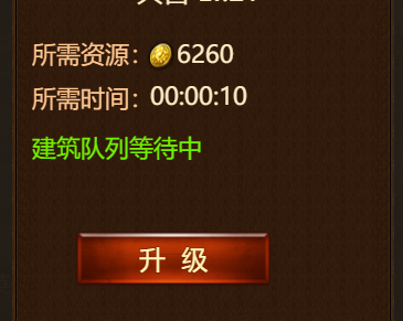 点击升级就可以花费资源升级建筑了。每次升级都需要一定的冷却时间。如果领主们短时间内有大量升级需求的话,可以使用钻石加快这一进程。